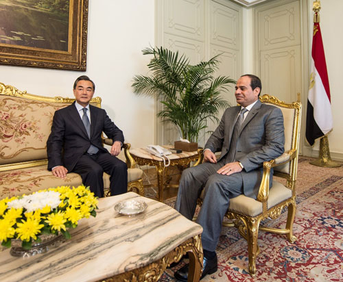 埃及总统塞西回见中国外交部长王毅(资料图)