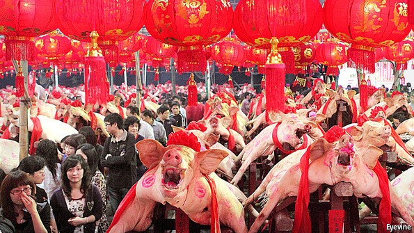 《经济学人》12月20日发表的文章标题为《猪的帝国》。文章称,中国对猪肉消费“贪得无厌的欲望”是这个国家崛起的象征,同时也是对全世界的危害。文章先从古代中国人用猪祭祀祖先开始,详细叙述了中国人消费猪肉的历史。