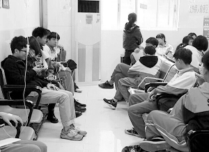昨日上午,增城人民医院输液室内挤满了前来打点滴的学生。不少学生脸色苍白,不时有学生捂着肚子冲进输液室的洗手间内。