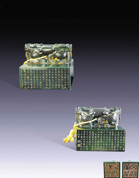 碧玉交龙纽方形御玺(清乾隆)