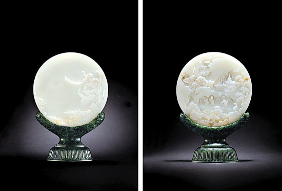 白玉圆形插屏连碧玉座(清乾隆)