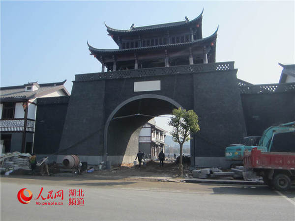 人民网宜昌12月30日电 今日,笔者在湖北省宜昌市夷陵区龙泉镇看到,总投资10亿元,占地120亩,集商业、餐饮、住宿、娱乐、休闲为一体的龙泉古文化街主体工程已全面竣工,工人们正在紧锣密鼓地进行绿化及相关配套工程建设。