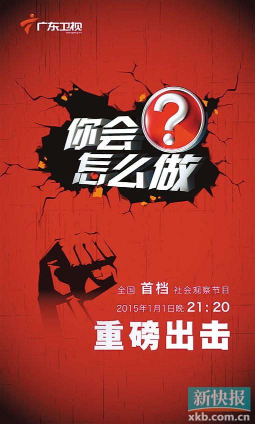 广东卫视倾力打造的国内首档社会行为观察类节目《你会怎么做》于2015年1月1日如期开播。凭借新颖的节目形式、精良的制作水准以及主题传递的正能量,节目播出后获得了观众的热议,该节目所探讨的社会问题而引发的人性正能量,也得到了业内的共同认可,被评为业界的良心之作!CSM 50城市收视数据显示,首期节目收视率达0.43,在全国省级卫视晚间黄金档排名第八!国内某著名视频网站收录节目2天点击量达到80万,评论数千,在同类型节目中表现突出!在元旦之夜各大卫视重金打造综艺娱乐节目强势夹击下,广东卫视《你会怎么做》给观