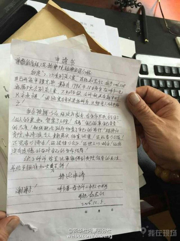 赵志红递出的偿命申请书