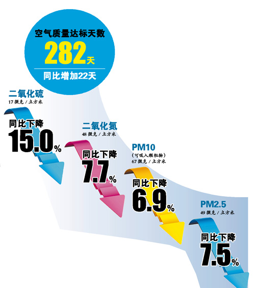一般一个地区年降一两微克都很困难 天公作美减排给力是主因