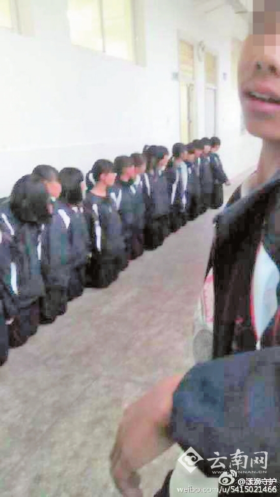 云南一学校学生集体下跪 当事人:游戏输家自愿受罚