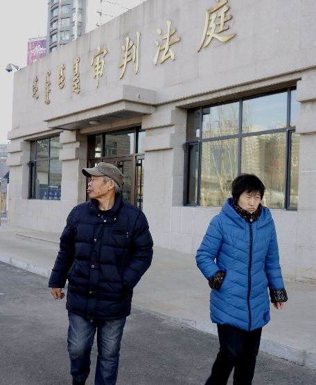 5日上午9时50分许,呼格吉勒图的父母李三仁、尚爱云旁听中途离开庭审现场。新华社记者贾立君摄