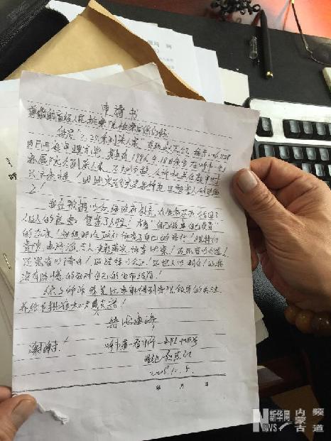 这是当年赵志红递出的偿命申请书复印件(1月5日摄)。新华社记者张丽娜摄