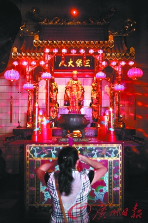 印尼三宝垄大觉寺,当地的华人在拜三保大人像。