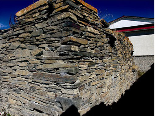 根据这一线索,巴桑罗布等研究人员发现了仓央嘉措的两处故居。第一处位于今错那县城的老居民区里,故居主体建筑是四柱八梁、186根椽子木的两层楼房,上层屋顶全部垮塌,底层房顶也多半坍塌。故居属石木结构,用料精致,梁、柱及椽子木选材讲究,木纹细密,质地坚硬。外围石墙砌技讲究,墙面平整,间或方木砌于墙体。目前这一故居已被列为西藏自治区级文物保护单位。