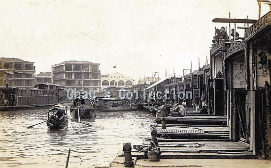 大沙头码头是当年水路交通要冲,省内各地船只云集。为使六十多艘花艇少占码头江面泊位,安排规定船头、船尾反向相拼排列,呈一字形伸向江心;船与船之间搭有扶手桥板通行,由岸边上了第一艘船,便可通达其后各船艇。为求保险,又在船边竖立木桩,套以藤圈固定船身,可随潮水涨落,再用横木绑定以防海风吹翻。在两艘花艇大舫之间,留有足够宽度的水巷,供各种小船进出。这些小船有载人上大舫的,也有售卖水果杂食粥粉夜宵的,及时供应众妓舫所需。事发当夜,因靠近岸边之船首先起火,隔断了后面船只的上岸求生通道;尤有甚者,着火大舫旁边有一艘小船正在水巷里售卖食物,公婆二人眼见大火烧来,奋力划离,慌乱之际竟然抽去桥板,更使后面所有船只的饮客妓女无路可逃;加以当夜江风甚急,有些花艇即便解了锁链,因为风高浪急,反被浪涌推返火场,连排豪华花艇变作巨大的水上柴炉被焚毁于一炬,最终演变成多人死伤的时代大悲剧。