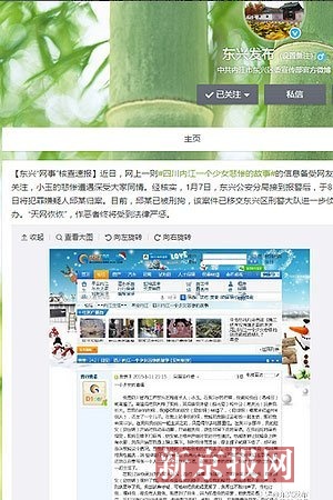 东兴区委宣传部官方微博的通报转发了小玉网帖的截图,并称,“小玉的悲惨遭遇深受大家同情……天网恢恢,作恶者终将受到法律严惩。”