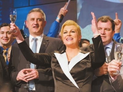 11日,克罗地亚选举委员会宣布,反对党的女性候选人格拉巴尔-基塔罗维奇(前)在当天的总统选举第二轮投票中胜出,将成为克罗地亚历史上首位女总统。新华社