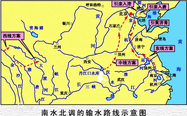 南水北调输水线路示意图