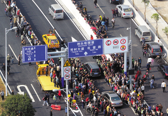 洲头咀隧道通车吸引了许多市民围观 羊城晚报记者 林桂炎 摄
