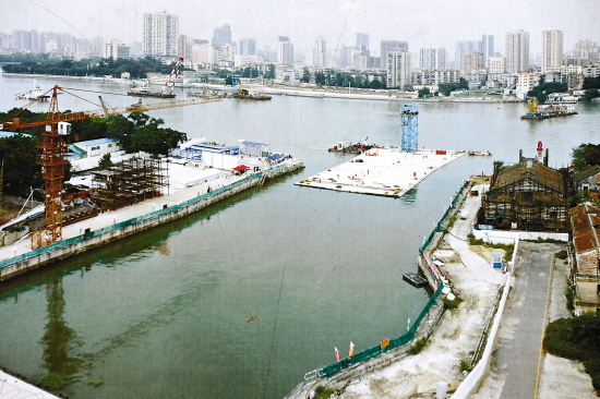 过去时 洲头咀隧道在建时,沉管浮运出坞 羊城晚报记者 宋金峪 摄(资料图翻拍)