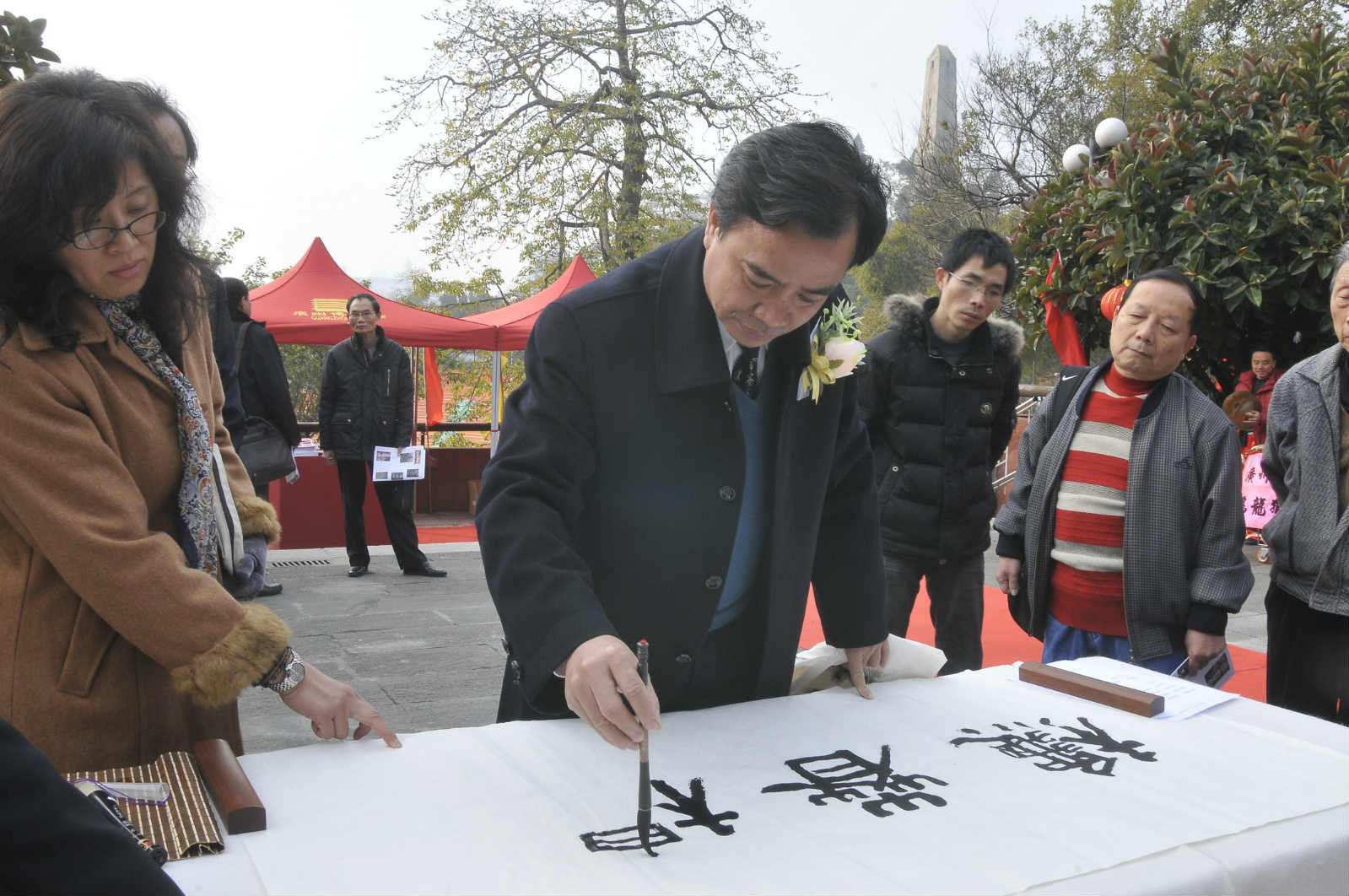 资料图:广州市文化广电新闻出版局副局长陈春盛在题字