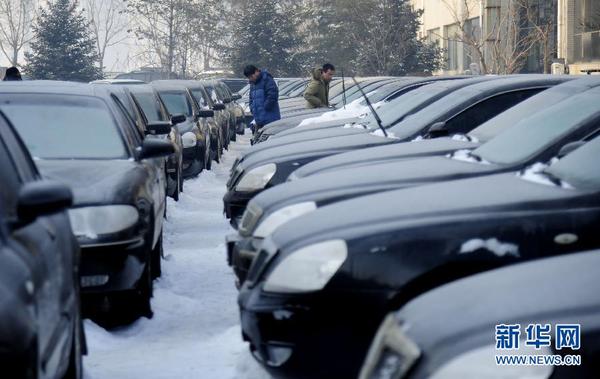 1月20日,有购车意向的市民在车辆停放处查看准备拍卖的公务车车况。沈阳市浑南区第三批涉及全区70余个行政事业单位的106台公务用车,将于1月23日委托沈阳产权交易所进行网上竞拍,车型包括奥迪、丰田等品牌。据悉,2014年,沈阳产权交易所共处置沈阳行政事业单位车辆305辆。新华社发(张文魁 摄)
