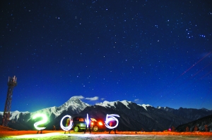 在星空与雪山中留下纪念。