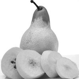 茄梨果实呈葫芦形或短瓢形,果皮绿黄色,阳面有红晕,果面平滑,有蜡质光泽,周围有淡绿色晕圈,外形很好看,咬一口肉质柔软易溶于口,汁多,味香甜。