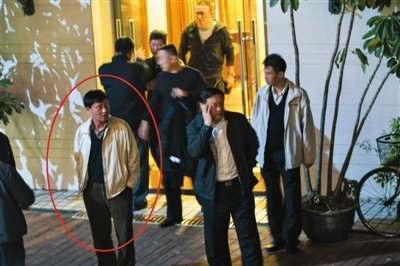 1月21日20时50分,罗湖东湖水库明珠海鲜山庄,参加宴会的人员从V888、V999包房出来,准备离开。经记者事后指认,身穿黄色夹克的中年男子(圈内)即打记者的嫌疑人——深圳市技侦支队退休官员王鹰航。