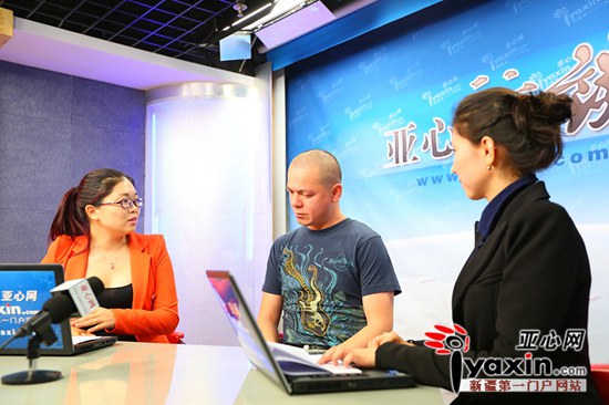图为帕尔哈提做客亚心网,畅谈音乐之路。 亚心网记者 吕伊晗摄
