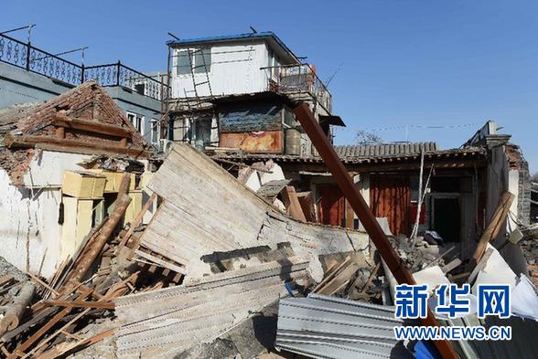 1月28日拍摄的北京市德内大街93号院塌陷现场。当日,北京市规划委就日前德内大街93号院附近发生塌陷一事作出回应:曾向业主发放工程规划许可证,但范围只包括四合院翻建,不包括开挖地下室,业主挖洞属违规操作。 新华社记者罗晓光摄