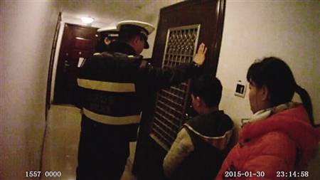 1月30日晚,沙坪坝区半月楼,王先生将外出送客的妻儿锁在门外。 沙区警方供图