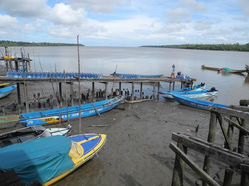 19岁的开船司机发动引擎后,我们跳上船,然后以我们最快的加速度航行到河中央,在浮游木块和茂密的芦苇间穿梭。当地村民一直追着我们跑了几英里,哈伦说在这片水域过夜不安全。于是我们来到Atsji镇。这是一个靠近海岸的沿河小镇,背对阿加特斯(Agats)主要港口,在这里有一个比较安全的小旅馆。