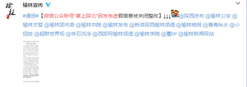 原标题:陕西一微信公众号散布“榆林恶霸”虚假信息被关闭整改