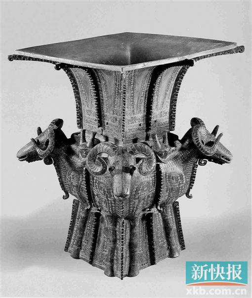 ■四羊青铜方尊 (网络供图) 高:58.6cm 用途:礼器、祭祀用品 所处时期:商(约公元前16~前11世纪) 出土地点:湖南省宁乡市 馆藏地点:中国国家博物馆 简介:整个器物用块范法浇铸,一气呵成,鬼斧神工,显示了高超的铸造水平,被史学界称为“臻于极致的青铜典范”,位列十大传世国宝之一 。
