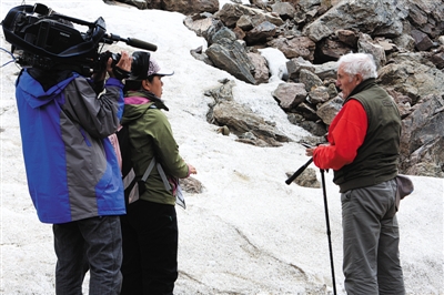 节目里那个老家伙从布满碎石的羊肠小道上走过,身边是万丈悬崖,还不时有山石滚落;拄着登山杖一步步下到4000米深的冰川底下,双脚都麻了;被人抱着才能上马,但骑上马之后又是一往无前……