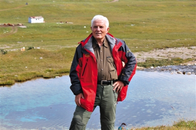 2013年7月18日,李忆祖协助央视《地理中国》节目组在新疆赛里木湖拍摄节目。70多岁的人,跟年轻人一样翻山越岭。李忆祖 供图