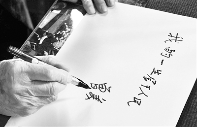 曾美在百岁寿辰时亲笔写下“我的一生属于人民”。