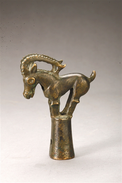首都博物馆藏西汉《青铜羊首仗饰》。