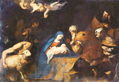 西班牙何塞·德·里贝拉油画《牧羊人朝拜》。