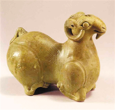 江苏南京出土东晋《青瓷羊》。