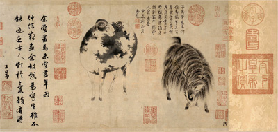 美国华盛顿弗瑞尔美术馆藏元赵孟頫《二羊图》。