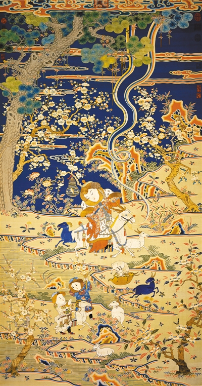 台北故宫博物院藏清《缂绣九羊启泰》。