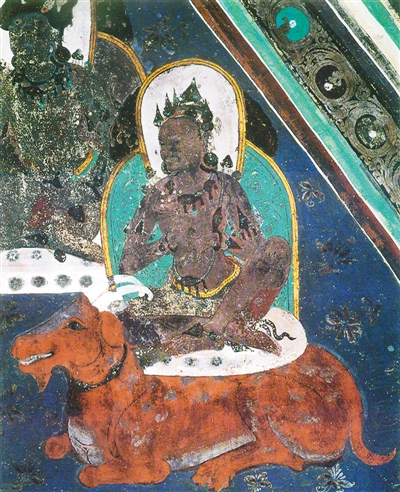莫高窟465窟元壁画《骑羊菩萨》。