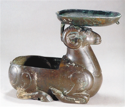 河北博物院藏西汉《铜羊尊灯》。