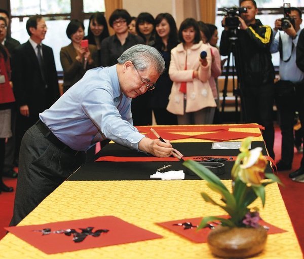 台湾地区领导人马英九、台“立法院长”王金平善写书法,在政治圈不是新闻,但少有人知道,台“行政院长”毛治国也是书法好手。前台“教育政委”黄光男擅国画、毛治国好书法,“行政院”官邸客厅还挂着两人合作的大幅画作。去年11月底“内阁”总辞,时任“副院长”的毛治国原本已准备随江宜桦同进退,第一个打包的用品不是别的、就是书法用具。