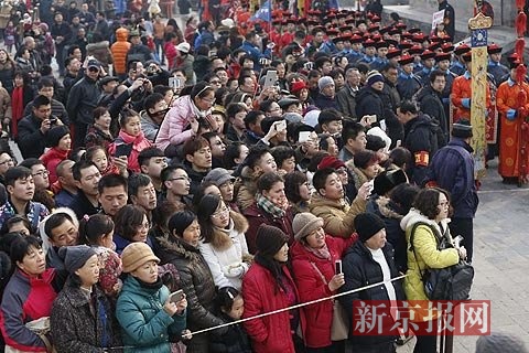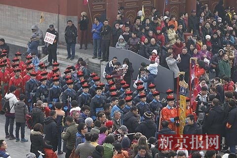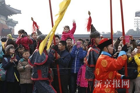 据工作人员介绍,此次天坛文化周从初一到初五,每天上午10点和下午2点都有祭天乐舞表演,为维护游客安全,已经取消了祭天仪仗表演。