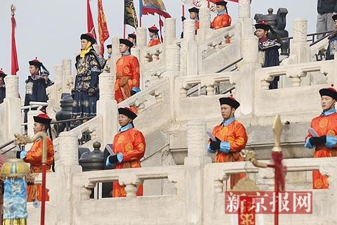 北京天坛举行“皇帝”祭天乐舞表演(组图)