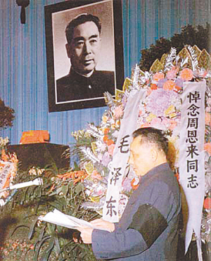 1976年1月15日,邓小平在周恩来追悼大会致悼词,资料图