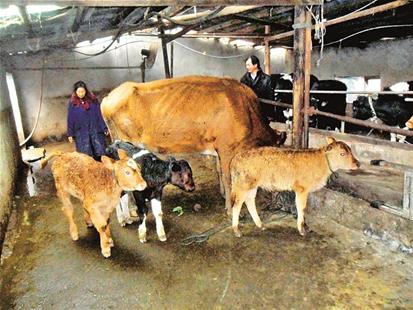 母黄牛一胎产下三崽 几率仅为50万分之一(图)