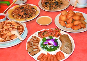 市面上一些大酒楼中很多烧鸡、烧鹅、烧猪、烧乳鸽、烧鱼、叉烧、鲍鱼海鲜等菜色,在斋宴的餐桌上应有尽有,制作非常精美,味道素而不淡,但所用原料是大豆、粉葛、野生菌、面筋等,且用的都是植物油,低胆固醇、低脂肪。