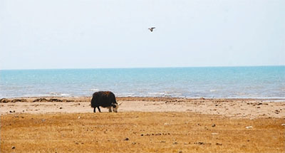 正月初六,天空飘起了雪花,青海湖畔美丽而寂静。远处,在积满雪的山谷间,牦牛群和羊群依稀可见,犹如一幅幅水墨画。