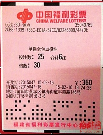 “单选全包25点”30倍投注 莆田彩民3D中奖3.9万元