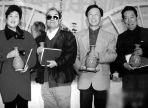 1995年,刘兰芳、袁阔成、田连元、单田芳出席辽视评书开播十周年盛会